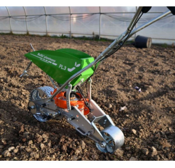 Acest instrument manual este conceput pentru a ușura munca operatorului folosind sistemul său de distribuție cu o tavă rotativă (sistem patentat). Procesul de transplantare, care până acum fusese o sarcină manuală, se mecanizează cu acest transplantator care poate fi reglat în câteva minute. Puteți gestiona cu ușurință înălțimea mânerelor, densitatea plantei pe metru, adâncimea de plantare, goliți buncărul basculant, deconectați sistemul de plantare și reglați ghidajul pentru rândul următor. Acestea sunt doar câteva dintre caracteristicile inteligente pe care le veți aprecia la utilizare.