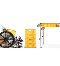 Se folosește în general pe lângă mașina de recoltat Silver Fox 03 pentru recoltare. Lucrarea se face folosind gravitația care face ca fructele să se rostogolească în containerul de transport.