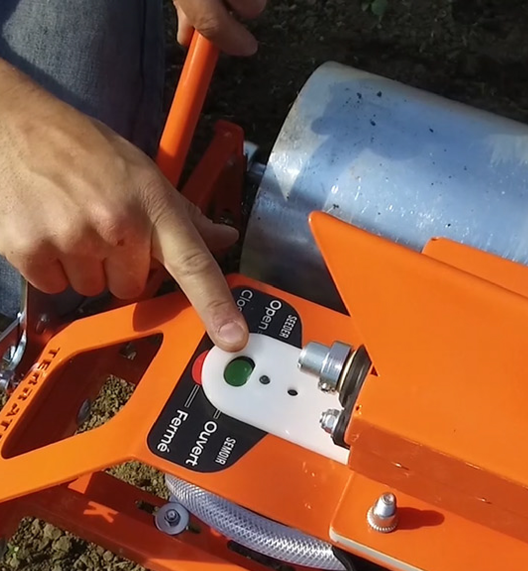Reveniți glisorul în poziția „deschis” și începeți să împingeți semănătoarea cu viteză moderată (1 până la 3 km/h) pentru a lăsa timp semințelor să coboare. Nu uitați să închideți însămânțarea când ajungeți la capătul rândului pentru a evita vărsarea inutilă a semințelor când vă întoarceți.