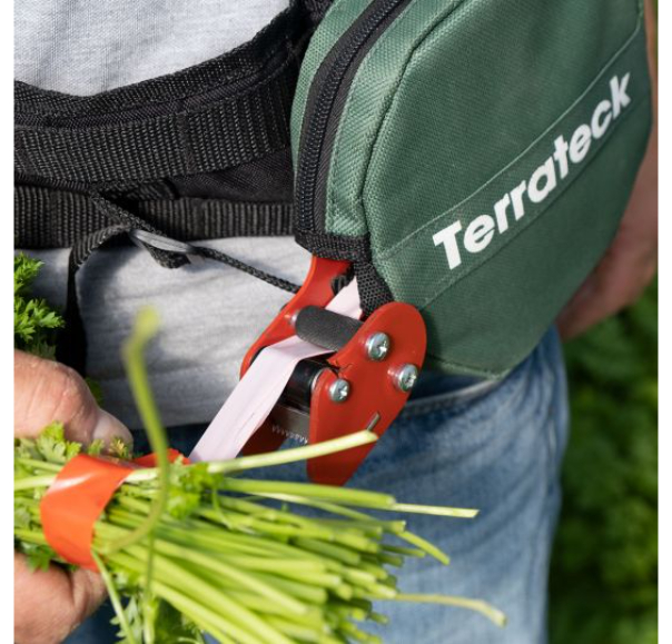 Montată pe o curea ergonomică căptușită, această mașină de legat poate fi adaptată la orice dimensiune de pachet. Se potrivește perfect producătorilor care își produc pachetele pe teren.