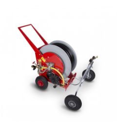 Când derulați furtunurile de irigare, pur și simplu repoziționați noua bobină pe tamburul de bobinare, care va asigura tensiunea folosind un arc. Acest lucru facilitează operațiunile de înfășurare în câmp deschis. Acest cărucior cu role facilitează depozitarea furtunurilor de irigare, optimizând în același timp spațiul de depozitare disponibil.