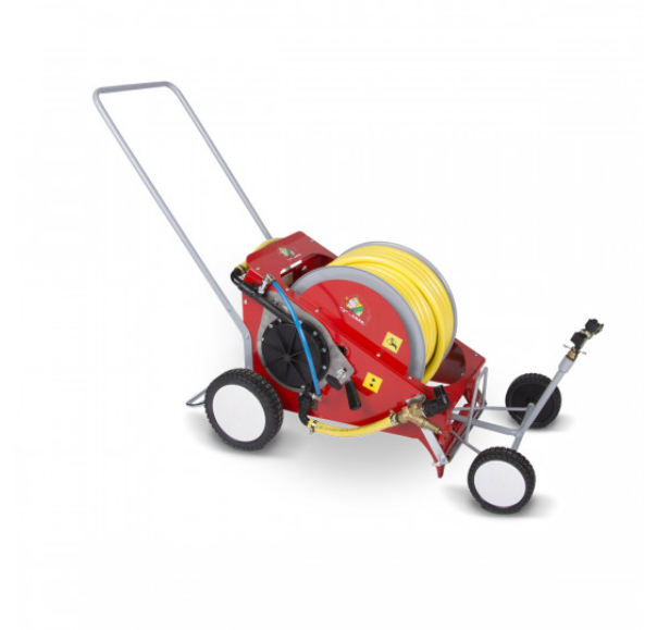 Bobinator de irigare pentru grădini și sere care poate fi folosit pentru udare la o distanță de până la 40 de metri.