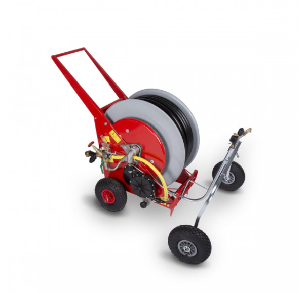 Folosit inițial în cultivarea florilor, este potrivit pentru irigarea unor terenuri mici sau câmpuri deschise. Odată desfășurat, căruciorul cu stropire este tras spre bobină folosind presiunea apei. Acest lucru are ca rezultat o distribuție uniformă și controlată a apei.