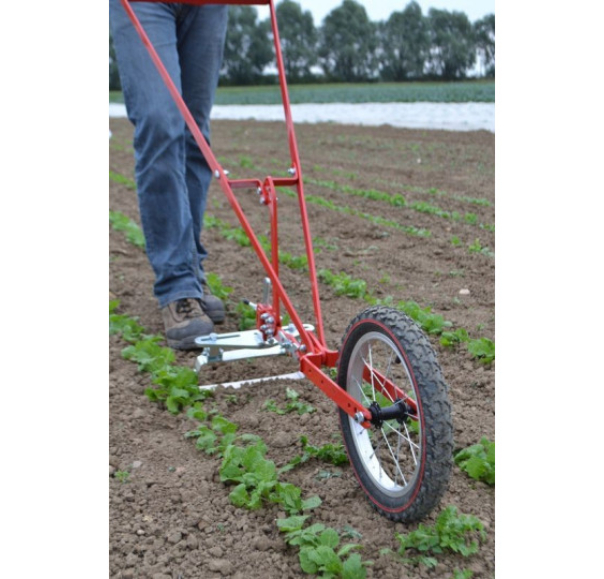 Sapă cu o roată municipală, cu braț fix pentru controlul mecanic al buruienilor.