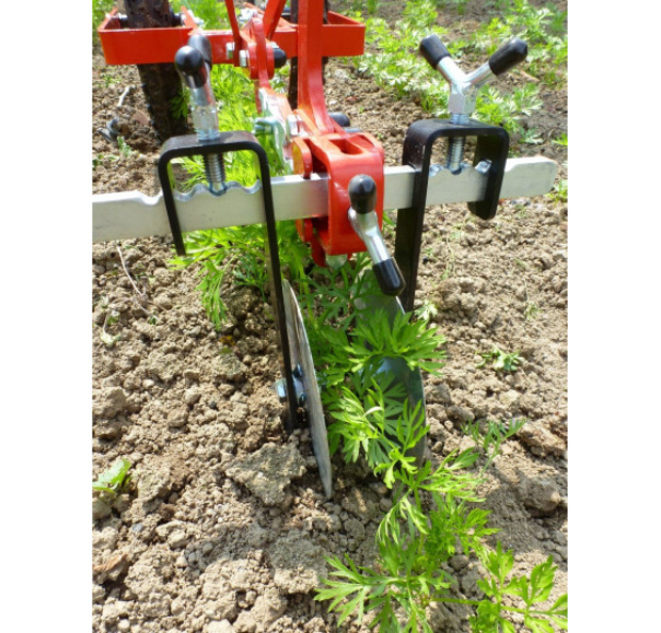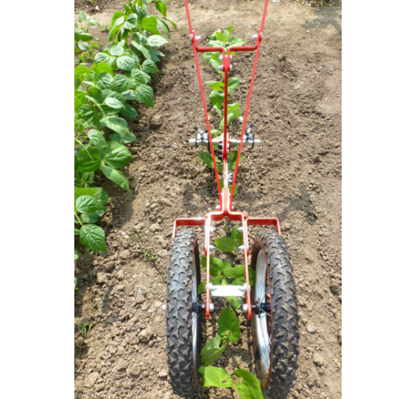 Cadrul nostru standard poate fi echipat cu un kit de două roți pentru a trece direct peste rând și a lucra cât mai aproape de culturi. Trecerea la două roți îmbunătățește procesul de plivire, făcându-l mai precis și mai eficient. Datorită instrumentelor suplimentare, veți aprecia numeroasele opțiuni oferite de sapa Terrateck.