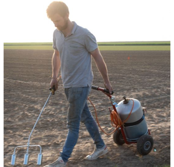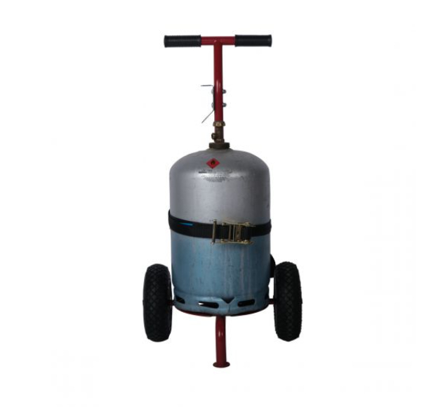 Cărucior profesional echipat cu roți umflate pentru transportul și utilizarea buteliilor de gaz de 13kg și 6kg atunci când utilizați mașinile termice de plivit.