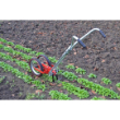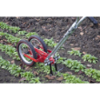 Sapă de grădinărit cu două roți pentru grădinarii amatori care pliviți într-o grădină de legume.