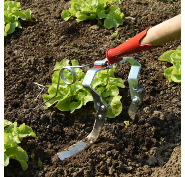 Dinții de arc, care sunt cunoscuți pentru performanța lor în agricultura pe scară largă, au fost montați pe o unealtă manuală pentru o combinație de plivire între rânduri și pe rând.