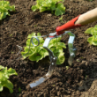 Dinții de arc, care sunt cunoscuți pentru performanța lor în agricultura pe scară largă, au fost montați pe o unealtă manuală pentru o combinație de plivire între rânduri și pe rând.