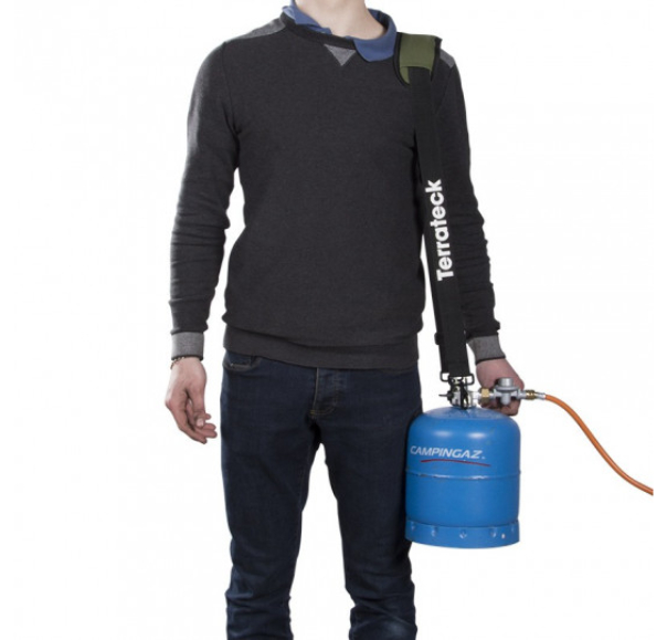 Suportul pentru sticle Terrateck este pentru a transporta sticlele Campingaz de 3 kg peste umăr, astfel încât să vă puteți păstra mâinile libere atunci când ardeți găuri în mulci.