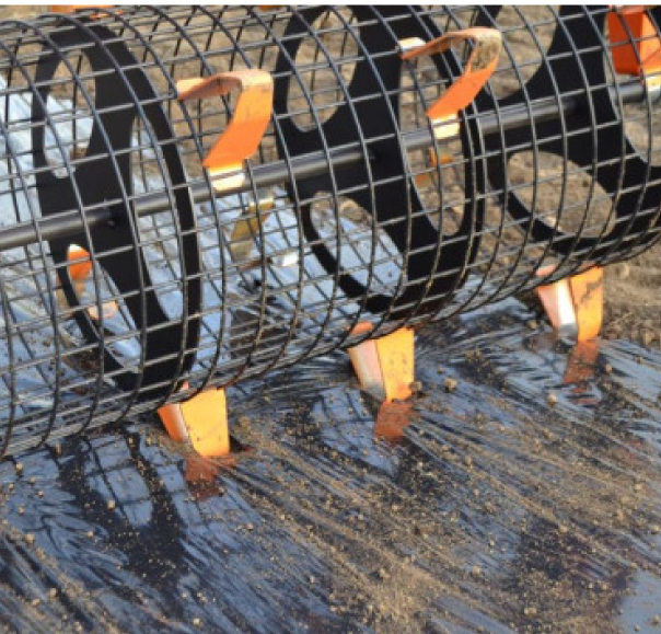 Având în vedere că rola este făcută din plasă de sârmă, ţăruşii în formă de V pot fi prinse cu ușurință folosind un clește, astfel încât să puteți marca solul și să faceți găuri în mulciul de plastic așezat în prealabil. Când pământul este greu sau mulciul este gros, până la trei blocuri standard de briză pot fi încărcate pe cadrul rolei patului de semințe pentru a îngreuna întregul sistem.