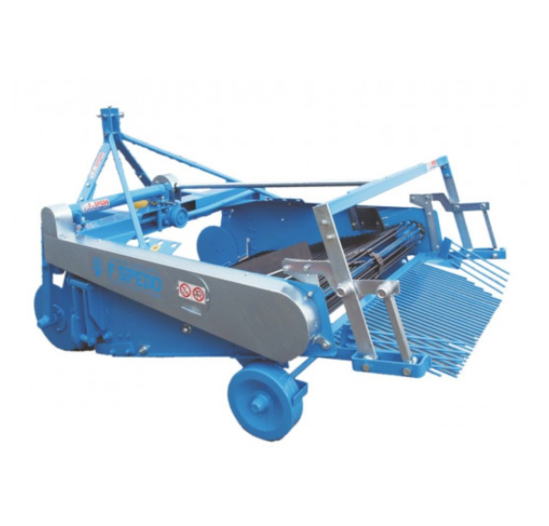 Pentru a preveni înfundarea pământului în spațiul dintre cotele de ridicare și transportorul cu bandă, mașina de recoltat este echipată cu un pieptene care sortează pământul și cartofii. Există opțional un ecran vibrator spate pentru separarea eficientă a pământului de cartofi, precum și pentru așezarea recoltei în rânduri.