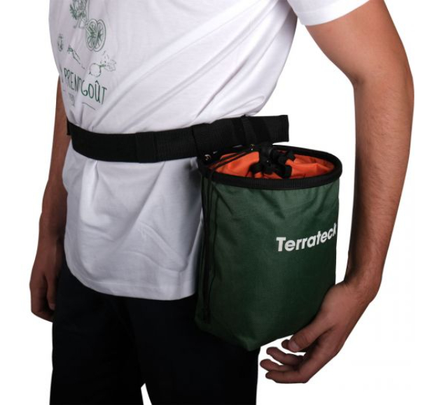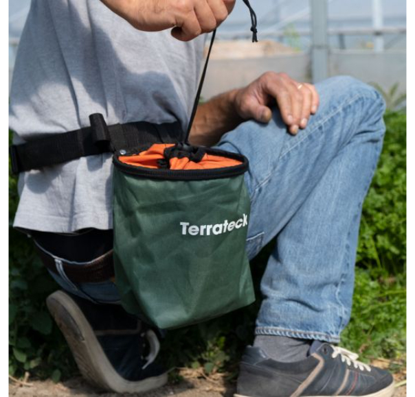 Odată ce ați alunecat-o pe curea, această geantă multifuncțională poate fi folosită pentru a lucra cu ambele mâini libere cu benzile elastice, semințele, clemele pentru țeapă, clemele pentru roșii, portaltoiul etc., toate la dispoziție.