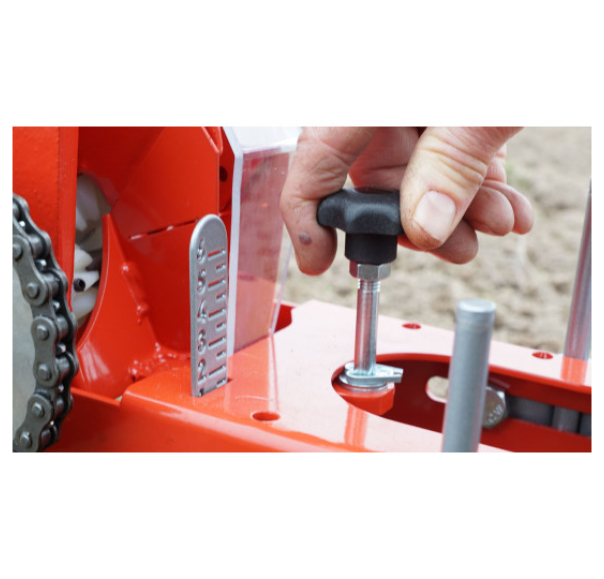 Există opțiunea de a regla adâncimea de însămânțare folosind o pârghie cu șurub și densitatea pinioanelor. Rezervorul său are o capacitate de 6 L și nu va trebui să-l goliți deoarece o va face instantaneu.