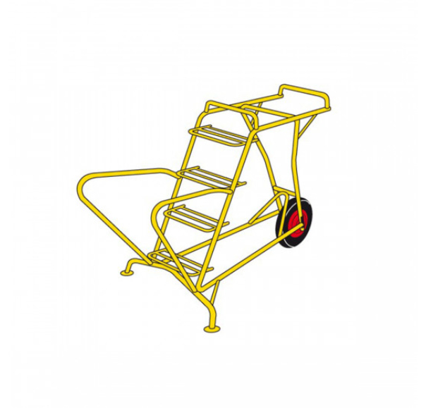 Scări de treaptă utilizate în principal în sere pentru recoltare. Cu balustrade la treapta a 3-a pentru ridicare la nivelul solului.