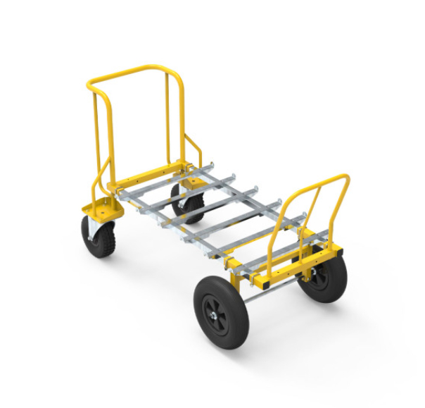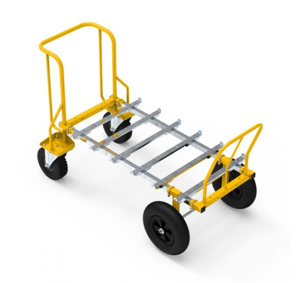 Cadrul său rigid și robust cu tuburi de Ø 30 mm este potrivit pentru transportul de încărcături grele. Cu o capacitate de încărcare de 120 kg, este încă foarte ușor de manevrat datorită celor două roți pivotante.