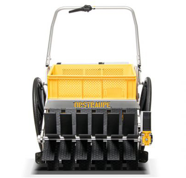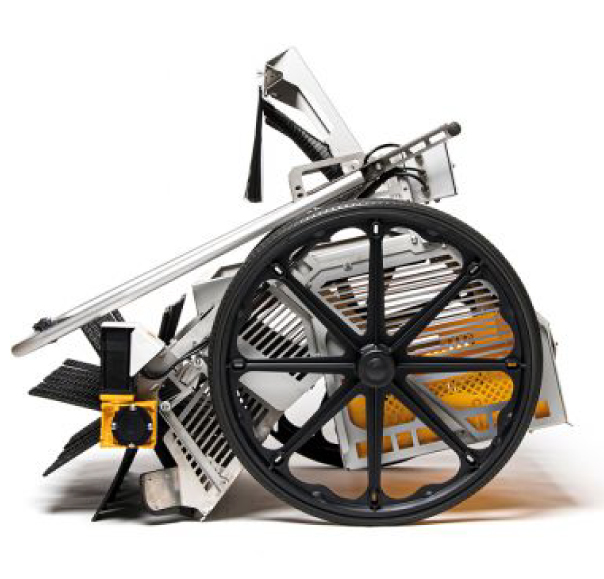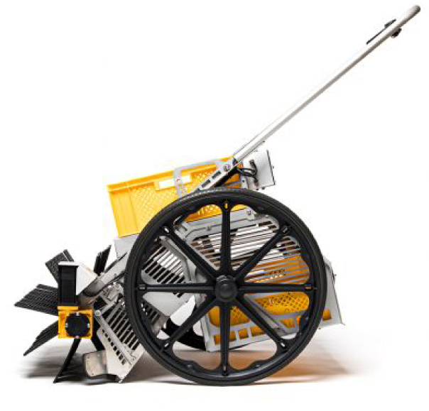 Motorul bobinei atrage produsul recoltat la o perie care sortează recolta din frunzele, ramurile și iarba nedorite. Produsul recoltat este pre-curățat și va fi depozitat în spatele mașinii de recoltat într-o cutie standard de 60x40x14cm. Această mașină de recoltat ușoară și manevrabilă funcționează folosind un sistem „împingere/tragere”.